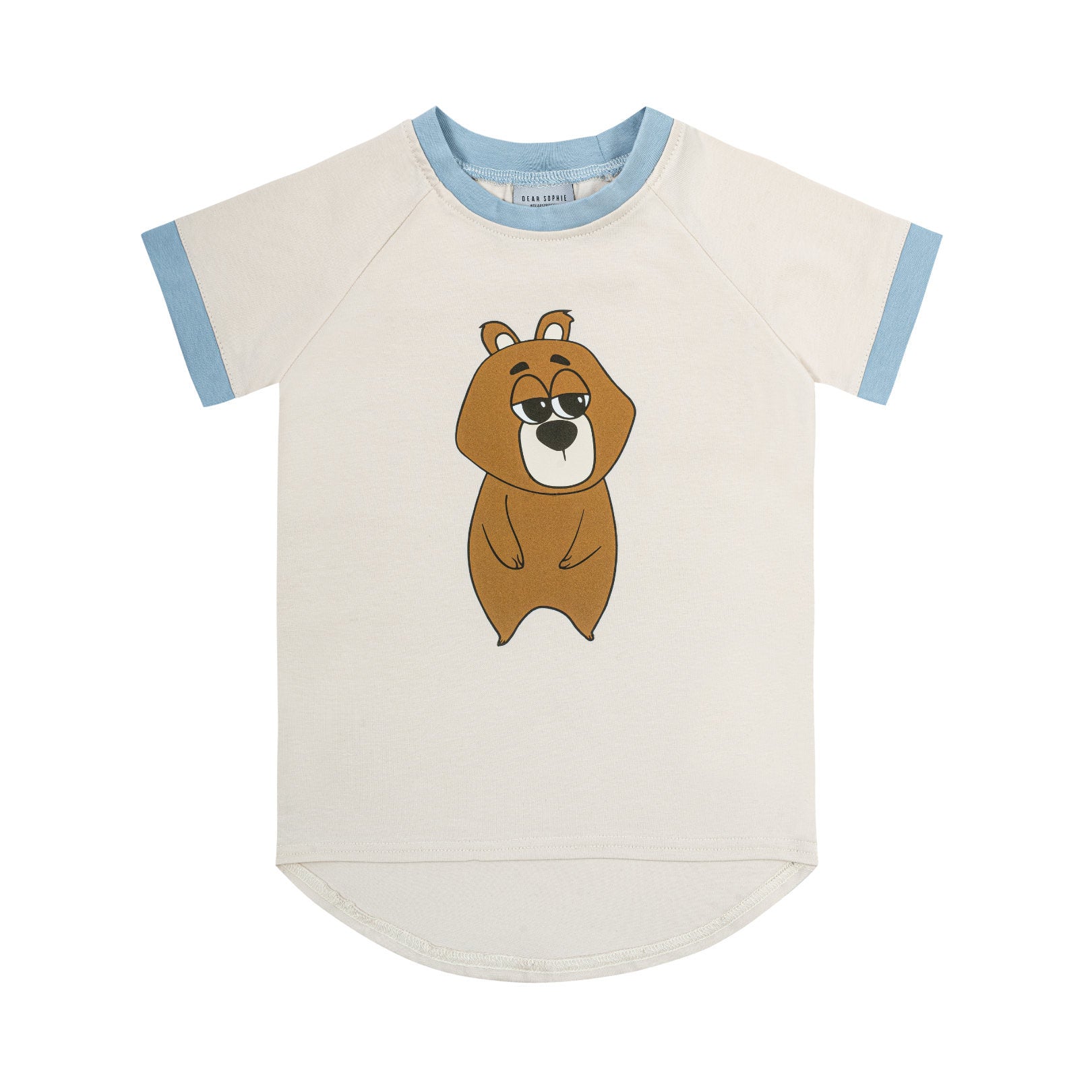 Plain fabric with just single print and cool contrasting sleeves makes this garment great match with DEAR SOPHIE bottoms (both short and long) to achieve more basic look.
