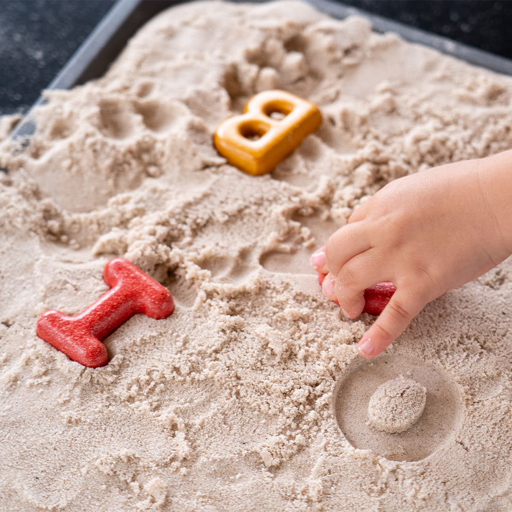 Develop your language skills with this alphabet set! 26 Upper case letters and 5 vowels are included to encourage communication and language practice (31 pieces in total). We use red colors for the vowels so children can begin to recognize vowels versus consonants. There is also a printable play card for viewing or download online.