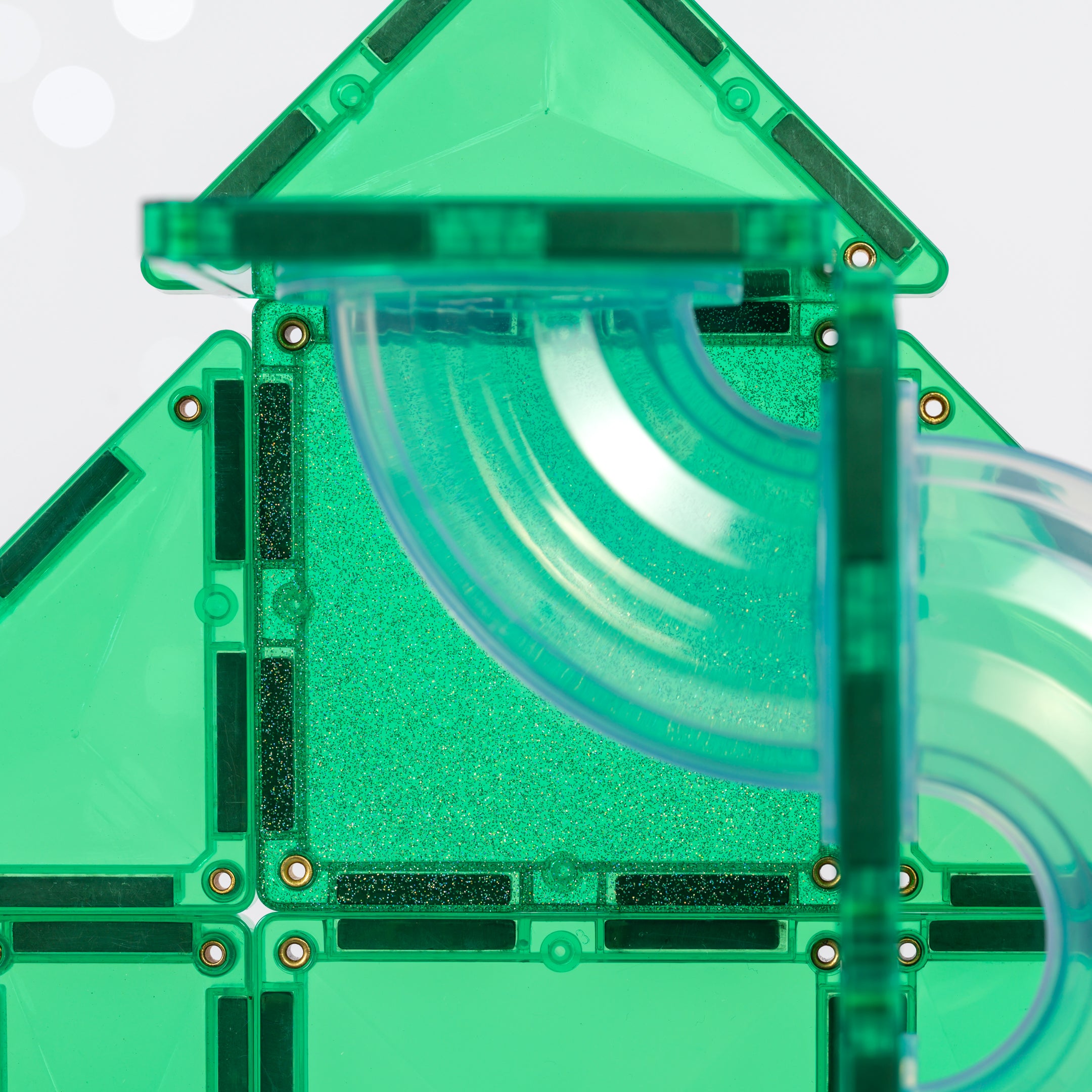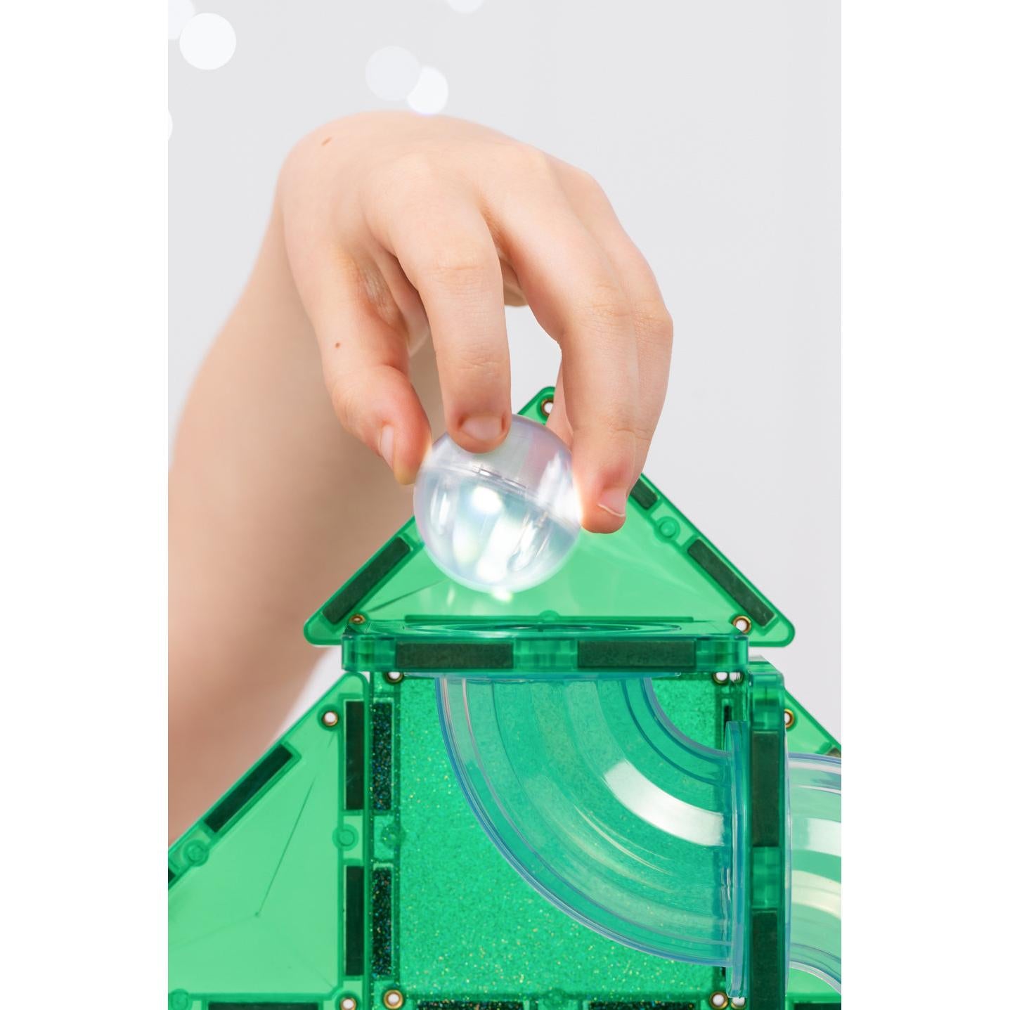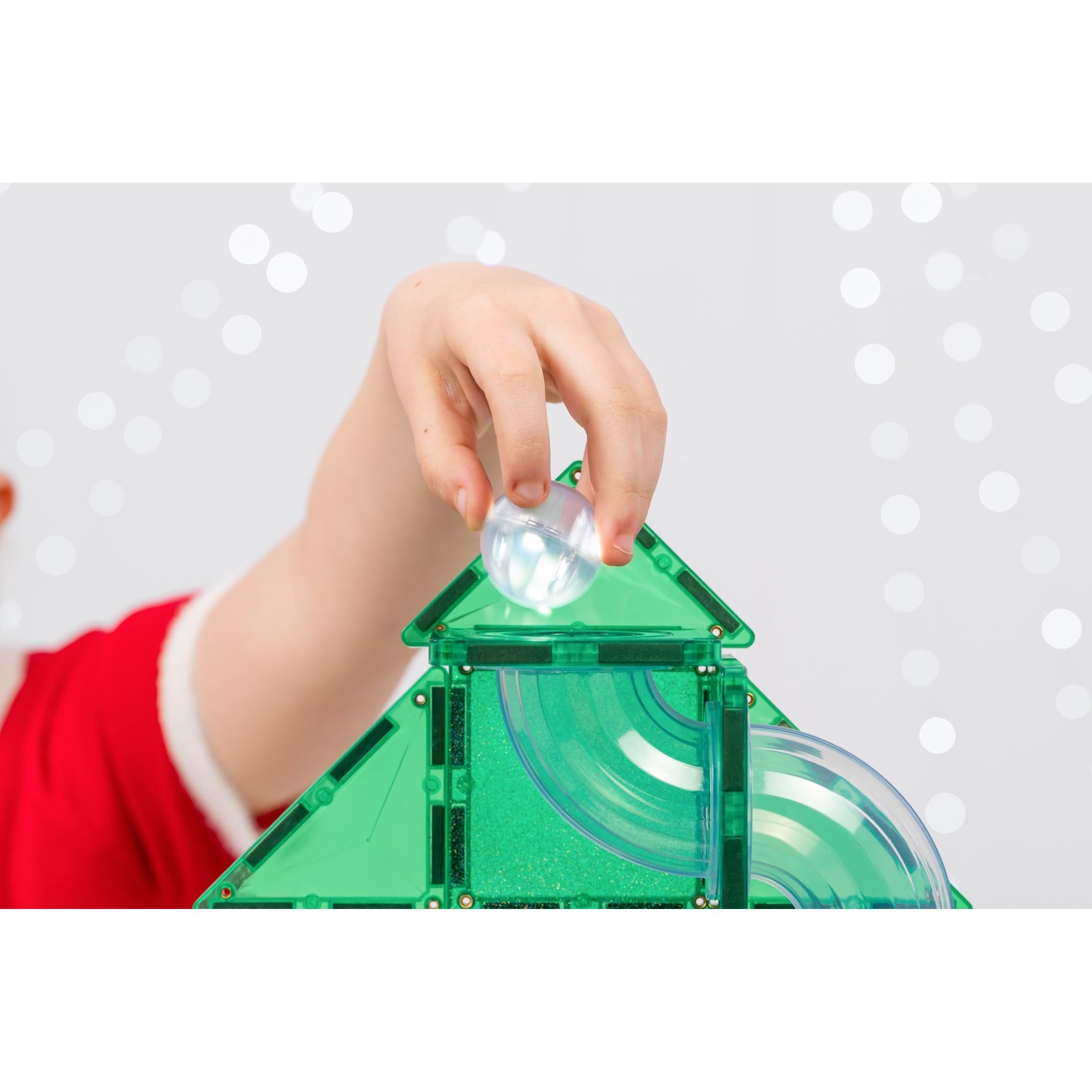 Unwrap hours of open-ended play and learning with Christmas Ball Run 71 piece FUN for everyone. This limited-edition pack features exclusively designed clear fluted tubes in an exciting range of pieces, including straights, slides and spirals to bring the joy of whirling, twirling ball run play this festive season. Showcasing a handpicked selection of magnetic tile shapes and connector squares in the traditional Christmas colours of green, red and yellow, plus adding a touch of magic with a combination of green glitter tiles this pack has everything you need to create a sparkling tree. Best of all, you can rebuild and enjoy it for years to come! Featuring four tactile wooden balls, watch as children unleash their inner engineer and team up with friends to race one another, build elaborate mazes, marble games, ramps and so much more ֖ this one-of-a-kind toy will provide hours of STEAM and MESH learning through play. Compatible with the entire CONNETIX range, this pack is the perfect gift to share the joy of limitless ball run fun or simply add to collections to take magnetic tile play in exciting, zooming directions.