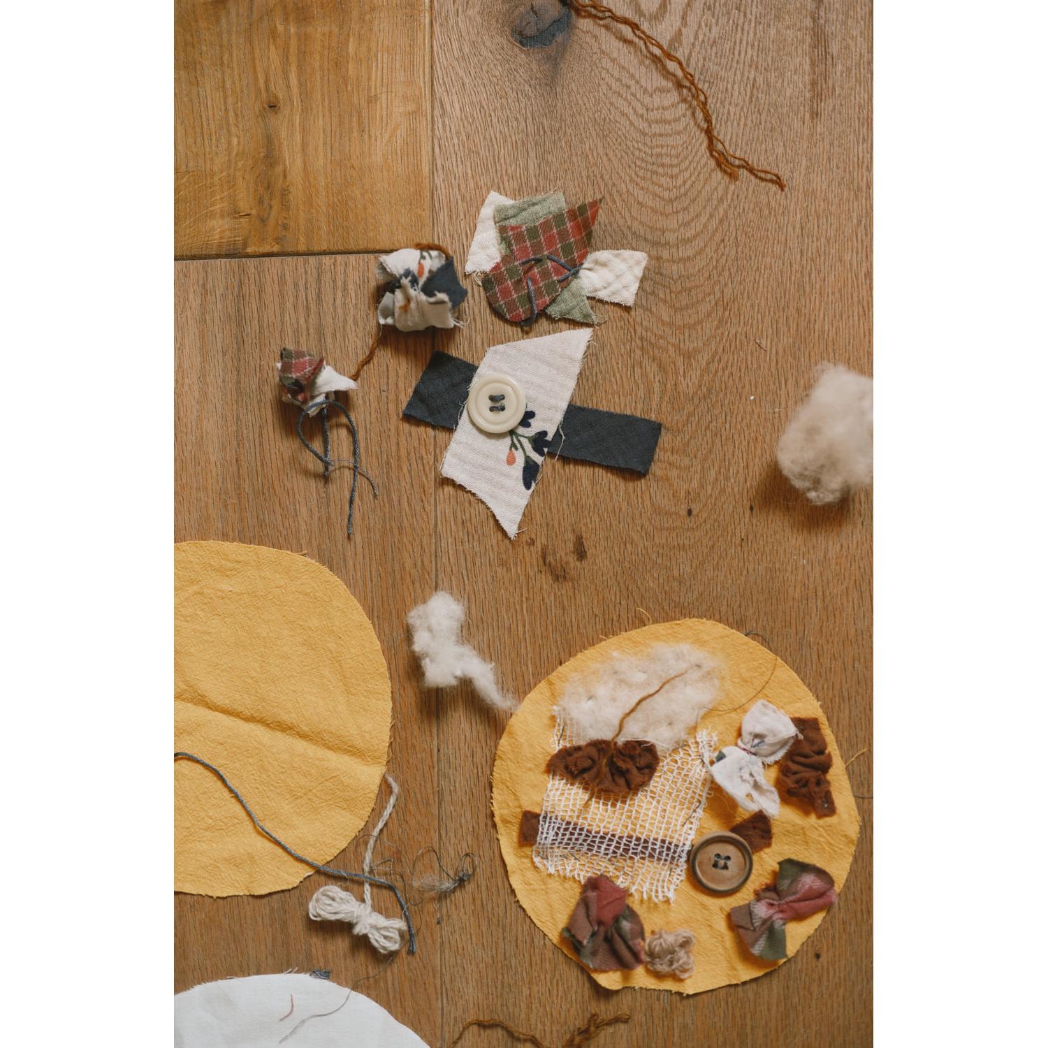 More than 180 pieces in different materials: wood, fabric, threads, wool, and