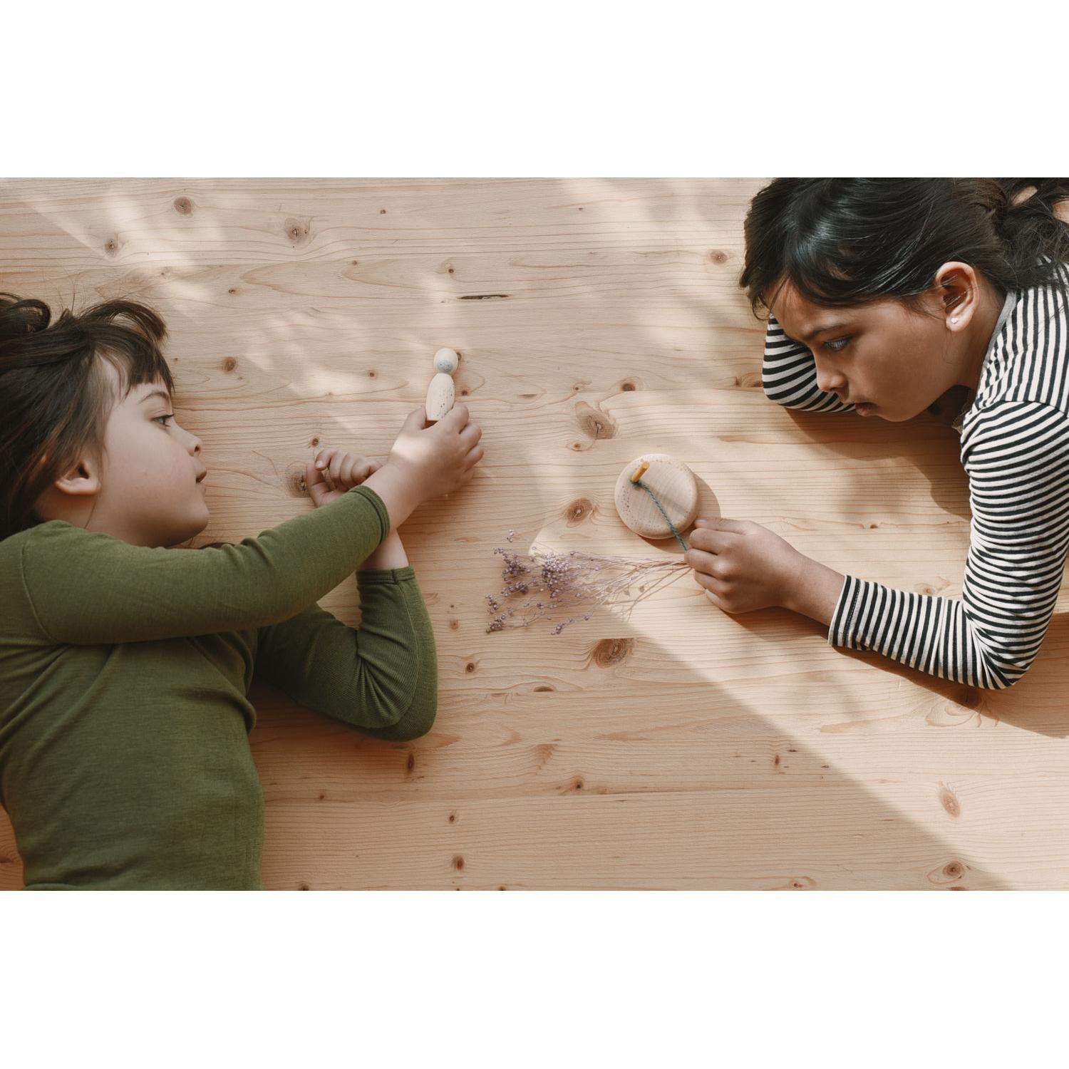 GRAPAT provides material without instructions, open-ended and autonomous play. Their only premise is to let children play, slowly, without time limits. Grapat hand crafts materials that encourage, invite and stimulate the creation of invented little worlds. Grapat is made following traditional processes, in the old way, with thick soft raw materials, natural dyes that let the wood veins be seen and vibrant coloured waxes and oils that slightly shine. The products are painted by hand, homemade, surrounded by nature and many children nearby that inspire the makers daily.