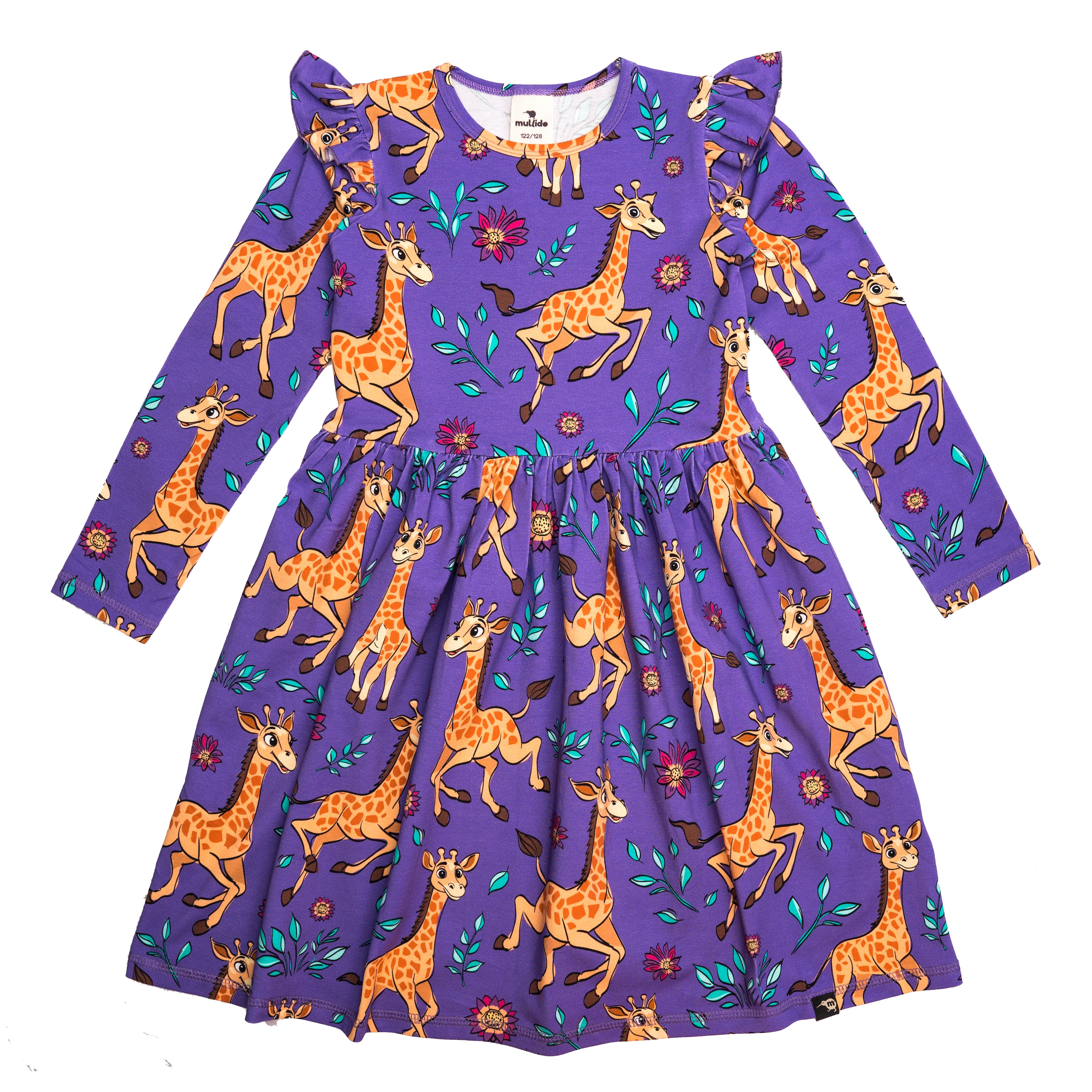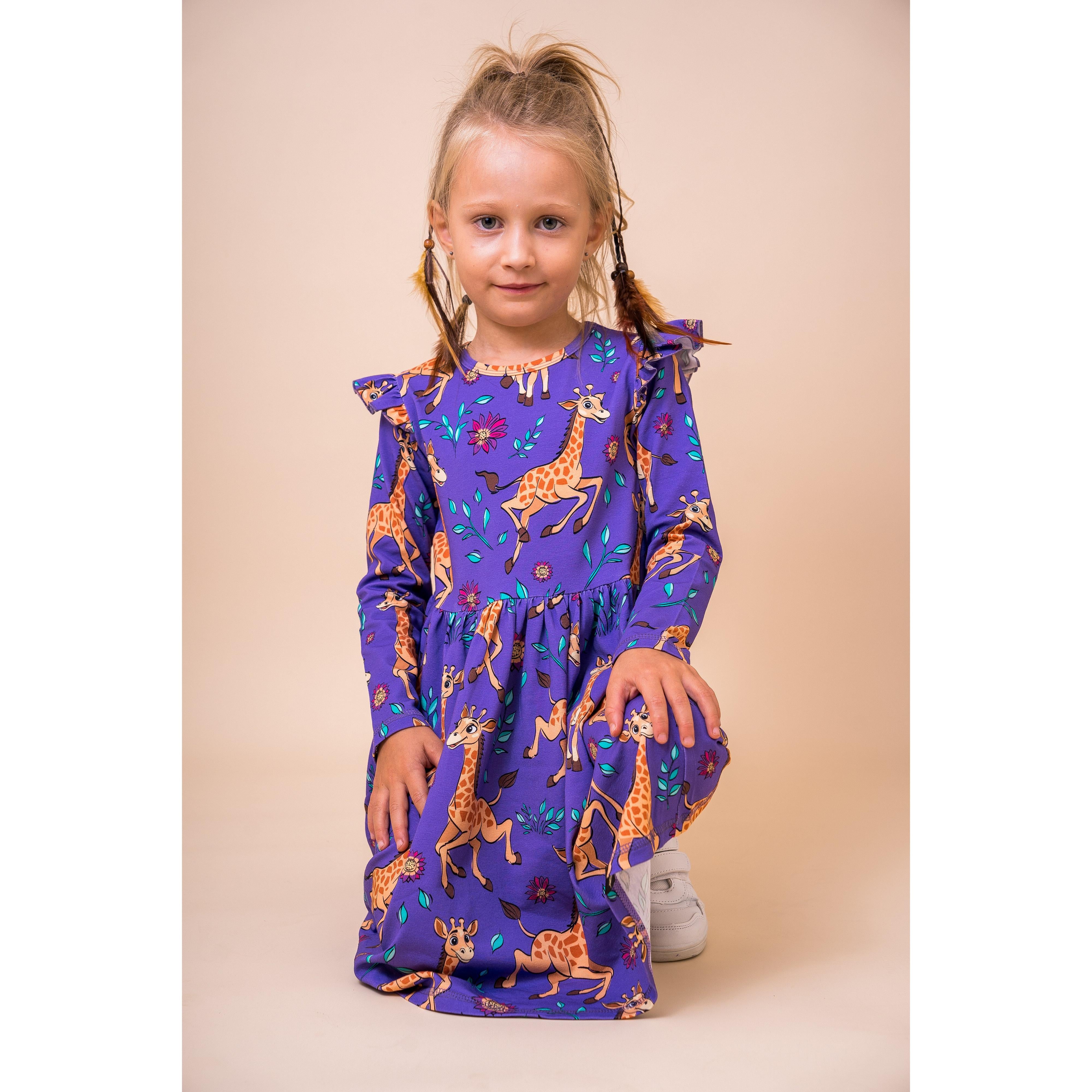 Purple Giraffes Long Sleeve Dress - 1 Left Size 8-10 years