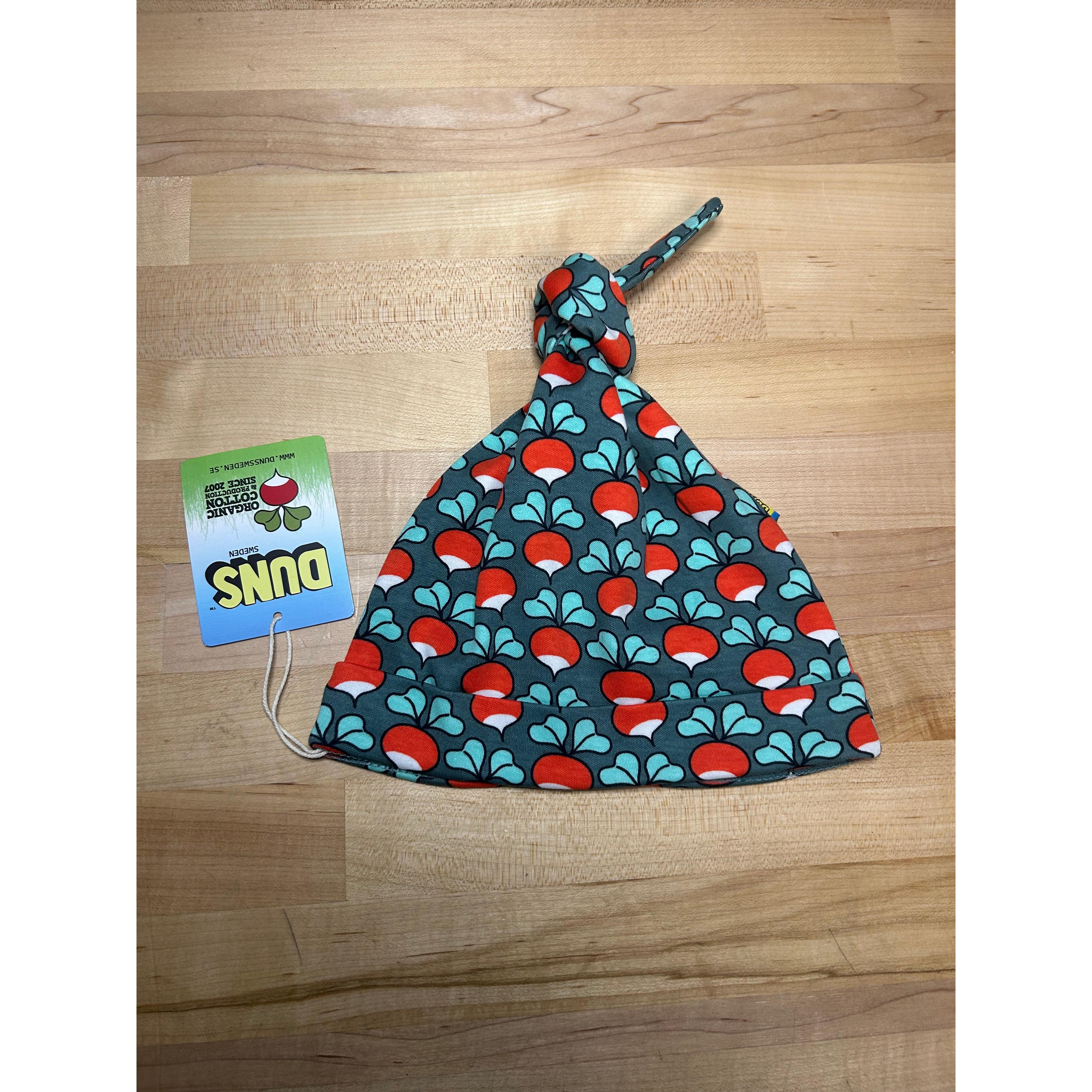 This knot hat with fold up is made of the softest organic cotton. The style helps keep them on little heads (even when you are babywearing). These are best for fall or winter, or winters in warmer climates.