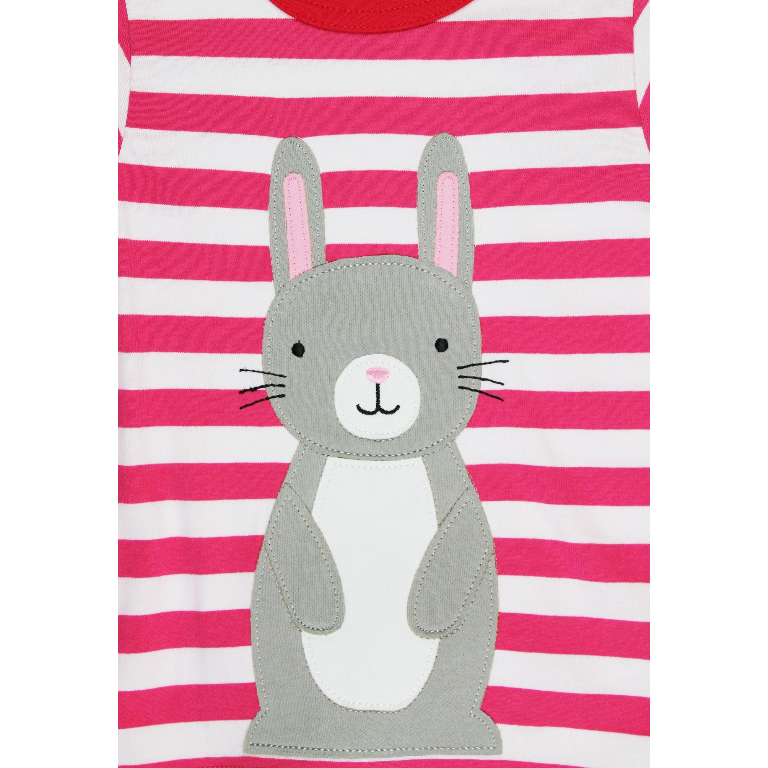 Get your kiddo hopping with our Organic Bunny Applique T-Shirt! Made from organic materials and fitting toddlers and kids up to 8 years old, this short-sleeved shirt is perfect for any little one. With pink and white stripes and a removable pom pom bunny tail, it's both cute and practical.