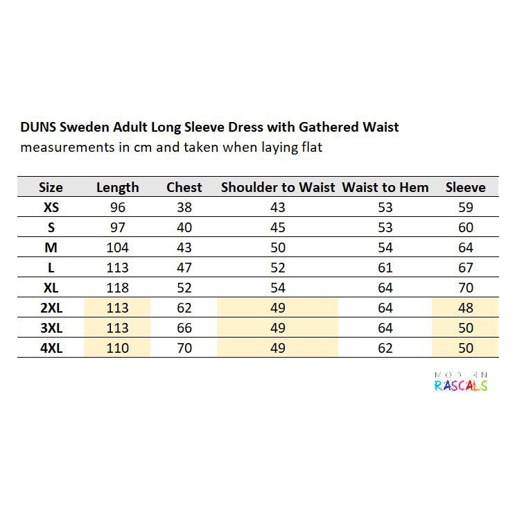 Note: measurements are based on a random selection of the current drop. There may be a variance of a few cm because we're human. Sizes 2X-4X have 3/4 length sleeves.