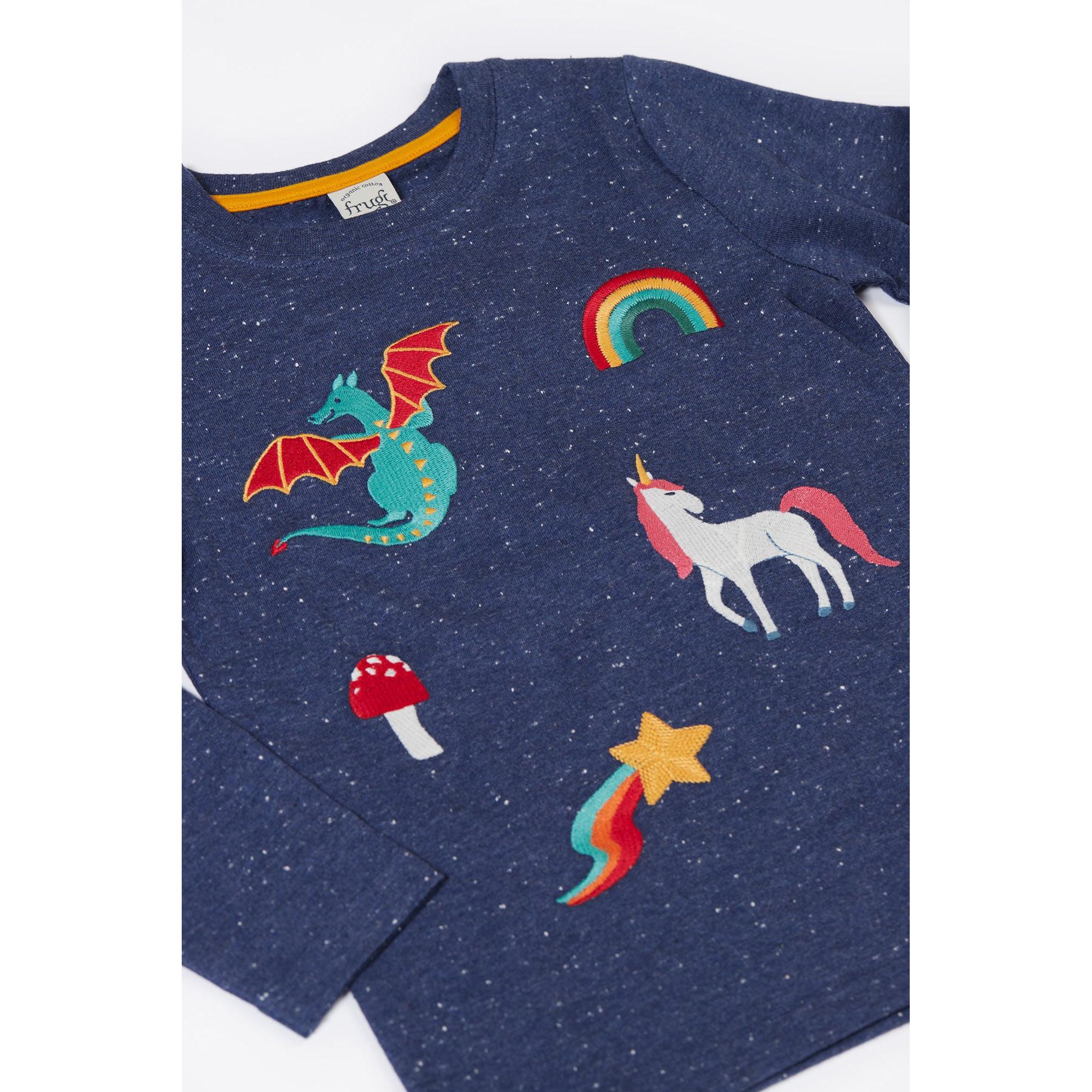 Made from organic cotton single jersey, our Nila Nepp Top is super soft and snuggly. Bright, colourful Frugi appliques bring playful charm to this long-sleeved top. Designed for easy dressing, it features convenient popper fastenings on the shoulder for sizes up to 4 years, making it a practical choice for everyday wear.