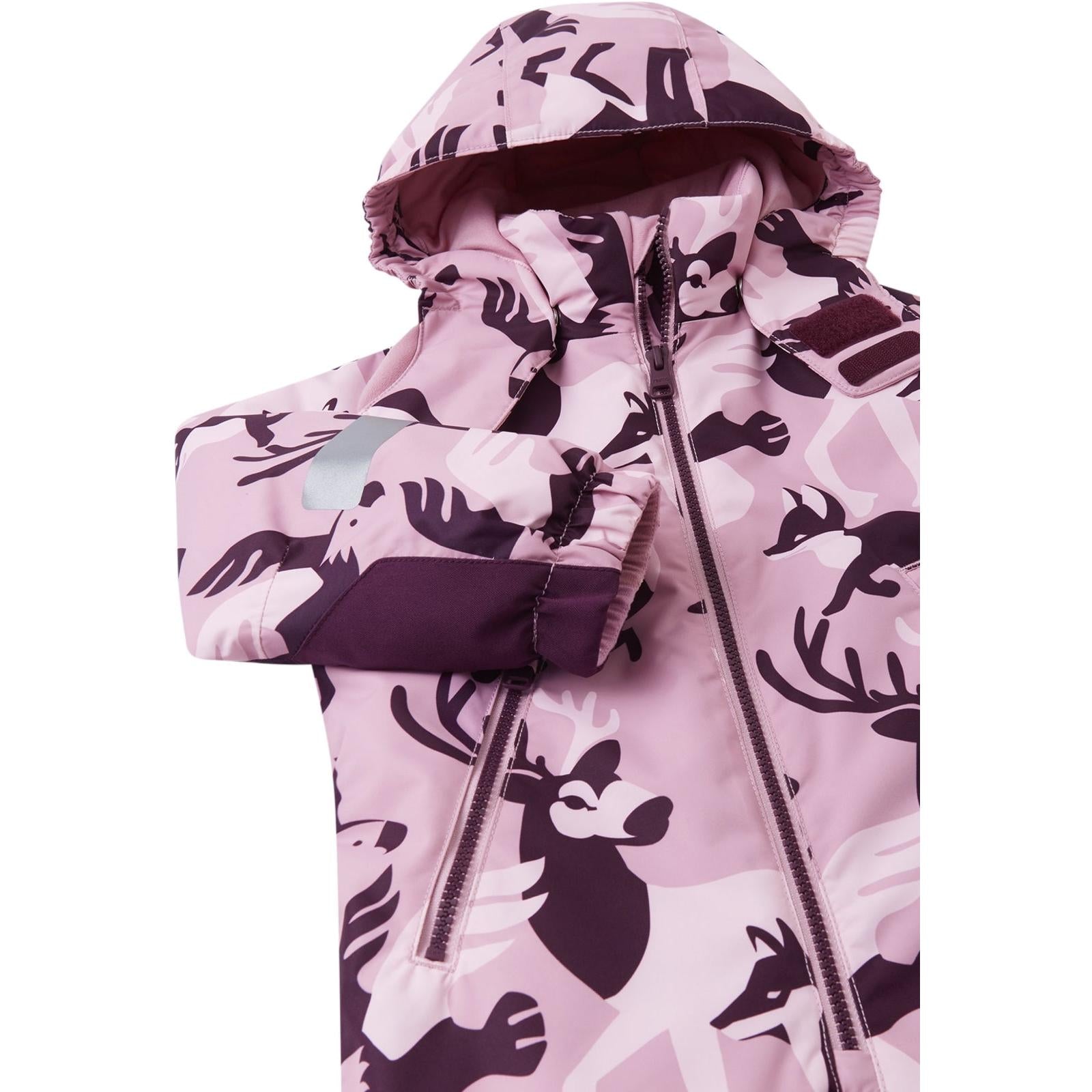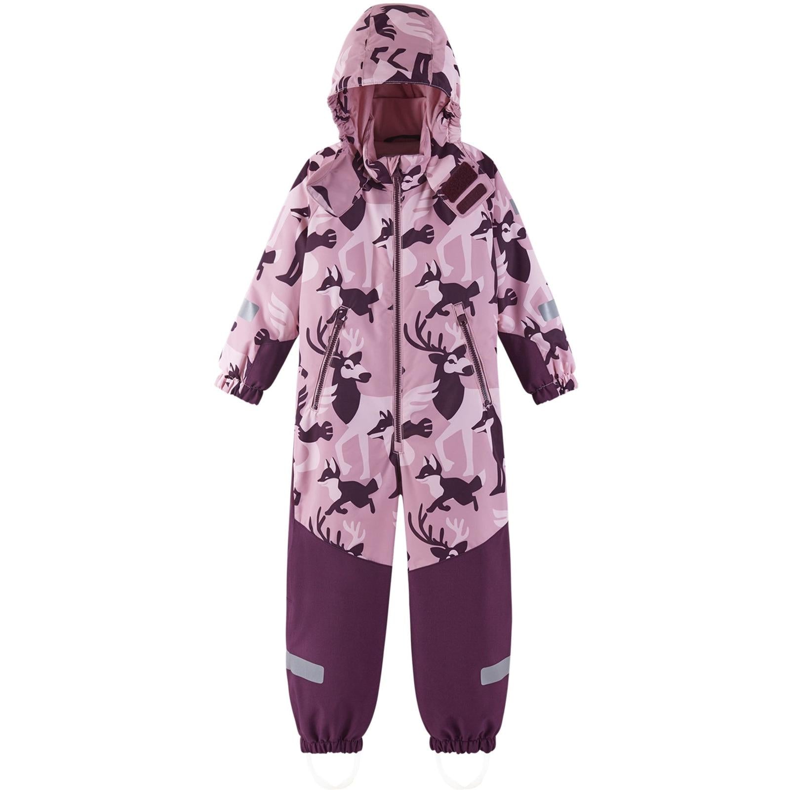 Reimatec snowsuit for kids' winter play. Fully waterproof and with durable reinforcements. Contains recycled materials. Visible reflective details.