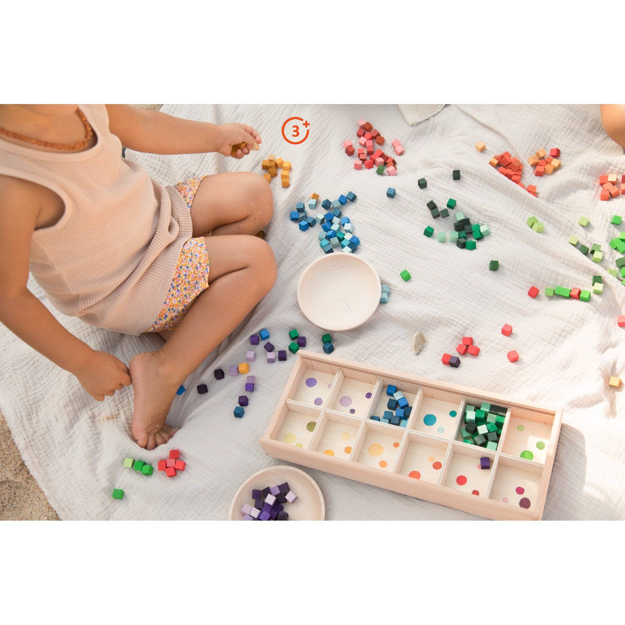 400 + small wooden cubes/ 36 gradient colours of the rainbow / includes a hand-painted wooden sorting box.