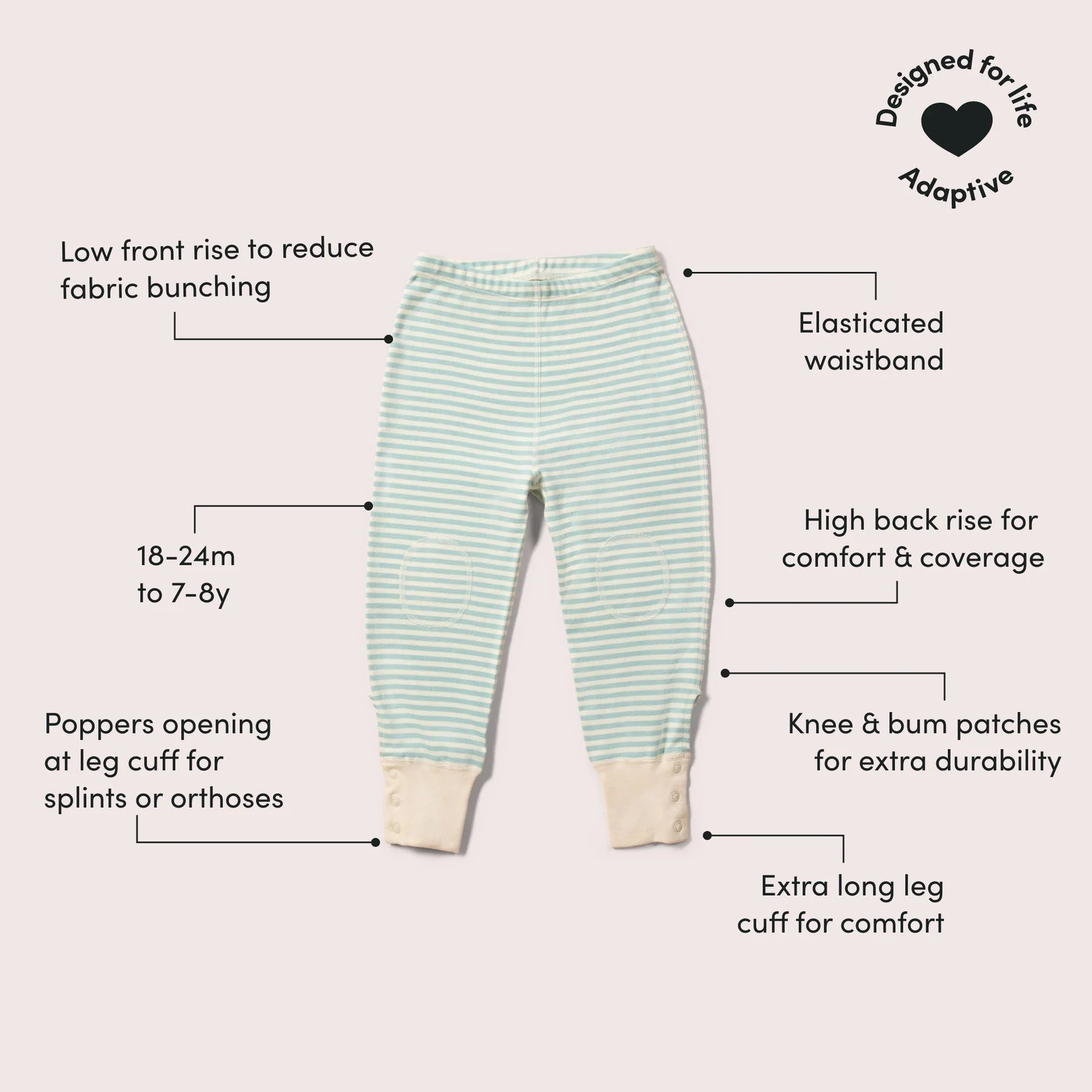 We've developed this range in collaboration with parents of children with disabilities who wanted comfy, adaptive clothing that's also bright, beautiful, functional, and organic! These extra-long joggers come with: