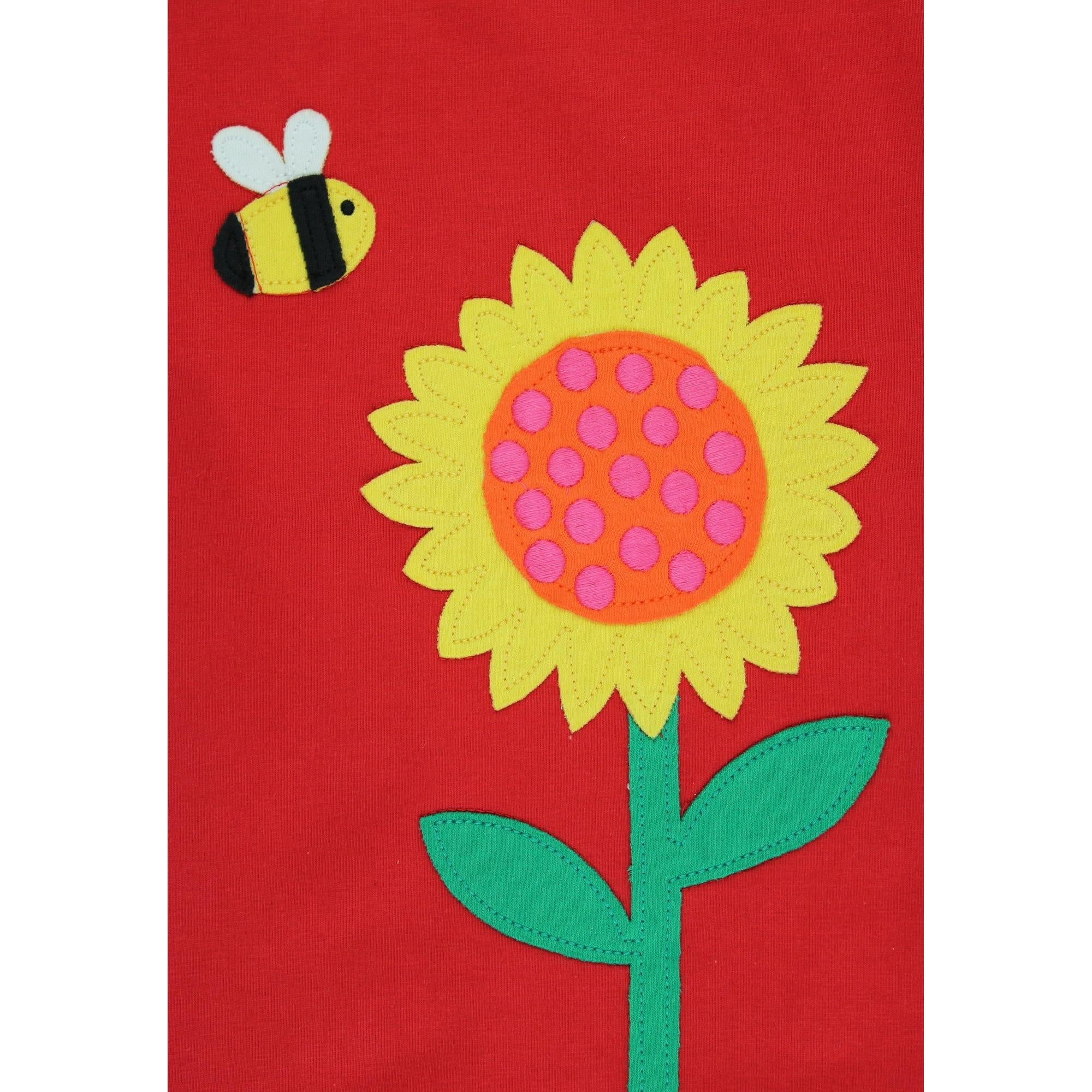 Brighten up little wardrobes with this playful red kid's t-shirt, trimmed in pink and featuring a cheerful sunflower and buzzing bee appliqué. Made from 100% GOTS-certified organic cotton, it’s super soft and gentle on delicate skin.