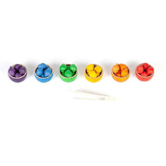 Contains: 6 bowls, 36 acorns, a set of tongs and a cloth bag