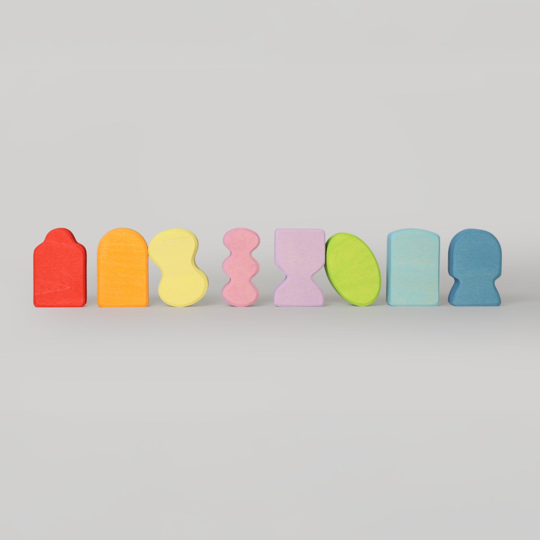 Windows open up a view of the world. This set includes wooden windows in a variety of colours and shapes, making them essential elements for imaginative building and creative play. They bring light into dark spaces, add charm to simple structures, and encourage storytelling through design. For the youngest children, the set also works as an early shape puzzle, introducing matching forms and colour harmonies in a playful way.