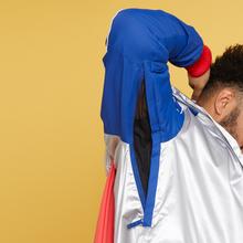 The cape is removable. The silver fabric is not reflective and will more easily show small marks/wear (this is not considered a defect as it's within the range of normal for this fabric).